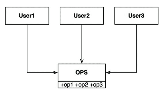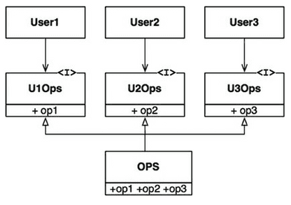 User1은 OPS 전체를 상속받았기 때문에 op2, op3 메서드를 사용하지 않더라도 갖고 있는 것이 된다.이렇게 된다면 op2 메서드가 변경되었을 때 함께 변경되어 재컴파일과 재배포등의 과정이 같이 일어나게 되면서 불필요한 낭비를 하게 된다.