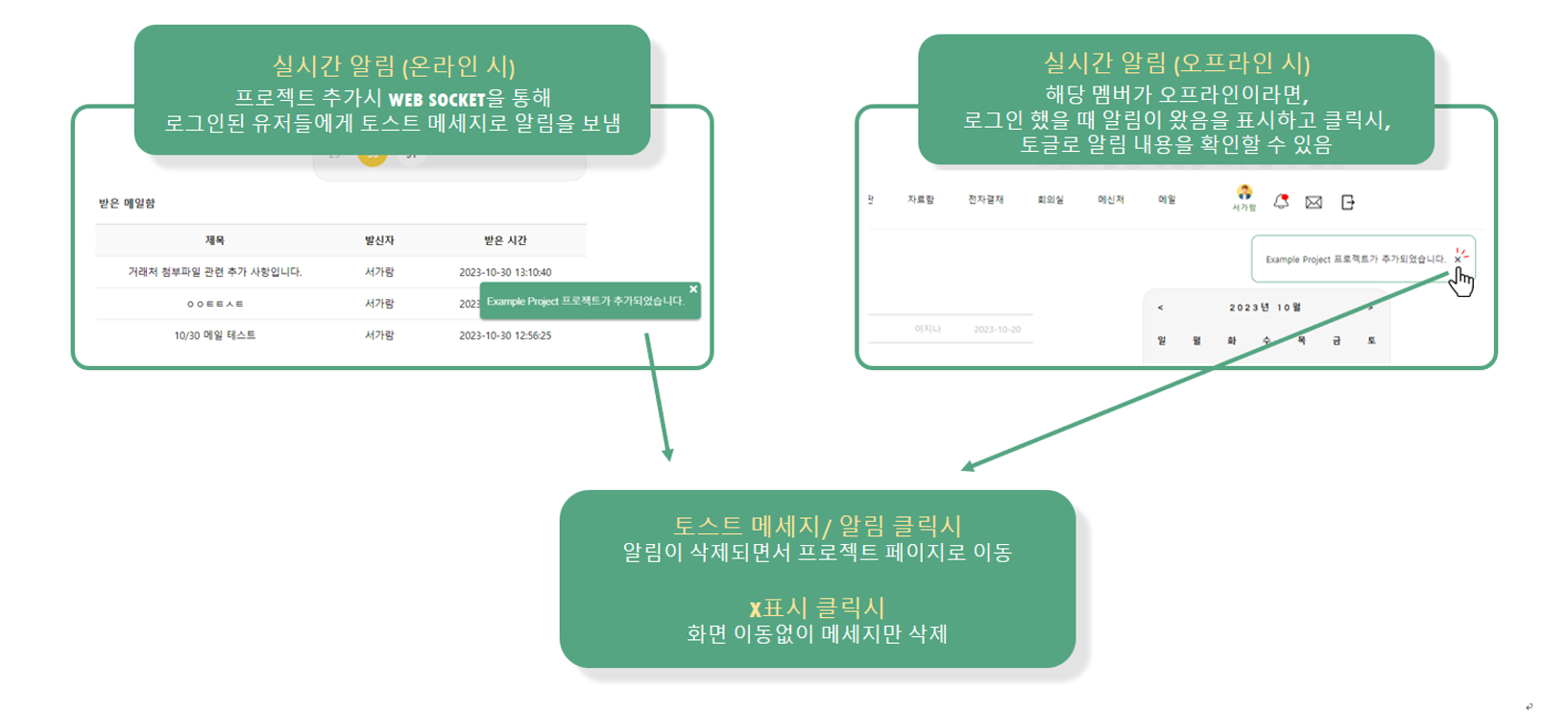 프로젝트 주제는 웹 ERD 프로그램이었고, 내가 맡은 부분은 내부 메일기능/ 프로젝트 알림(웹소켓 활용)/ WBS API 이다.