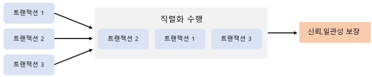 -> 여러 트랜잭션이 동시에 데이터에 접근 할 수 있도록 허용하여 시스템 자원을 최대한 공유하도록 한다 (트랜잭션이 무결성을 지키는 한해서)