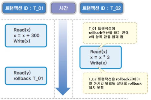 한 트랜잭션이 데이터를 갱신한 다음 실패하여 Rollback 연산을 수행하는 과정에서 갱신과 Rollback 연산을 실행하고 있는 사이에 해당 데이터를 읽어서 사용할 때 발생할 수 있는 문제
