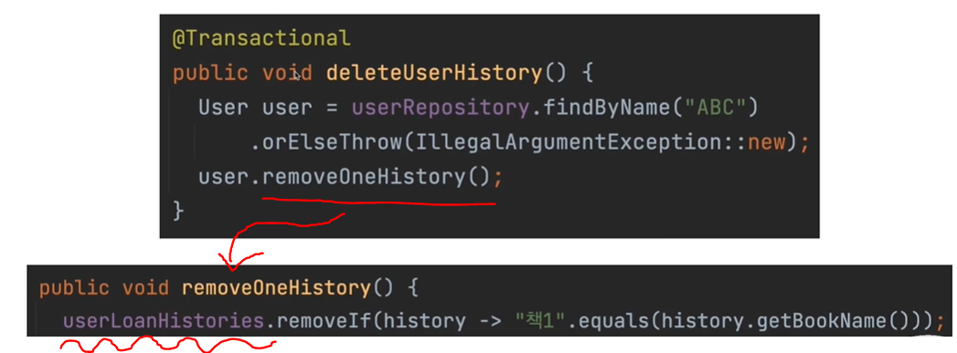 즉, UserLoanHistoryRepository를 직접 수행하지 않고 연결이 끊어진것만으로도 DB에서 데이터를 지우고 싶은 경우에 사용한다.