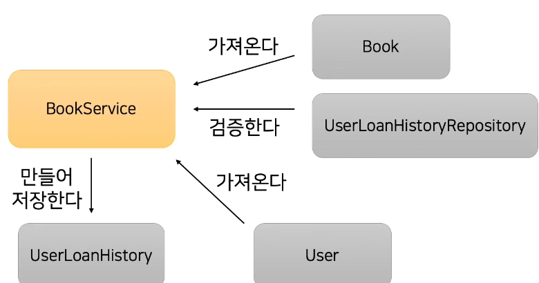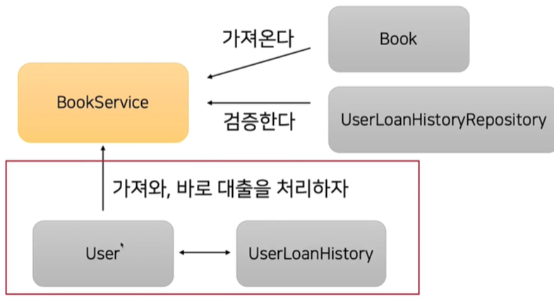 이 경우 User와 UserLoanHistory는 밀접한 연관이 있기 때문에 두 객체를 협업하게 할 수 있다.