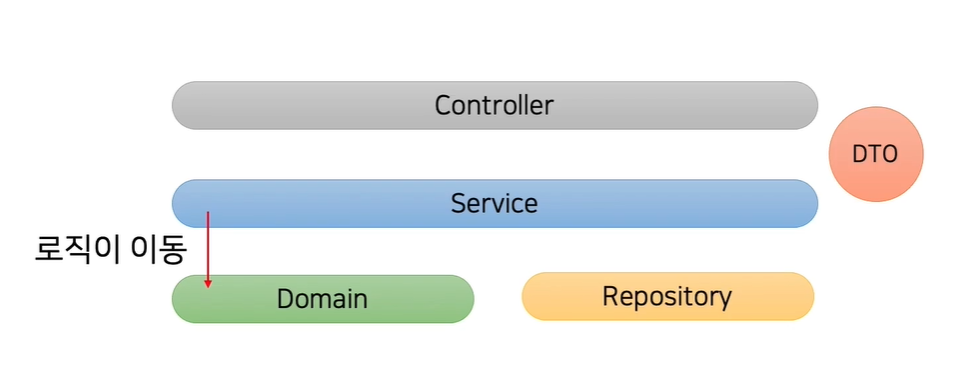 이렇게 서비스단이 아닌 도메인끼리 직접적으로 협력하게 바뀐것을 가리켜 "도메인 계층에 비즈니스 로직이 들어갔다"라고 표현하기도 한다.