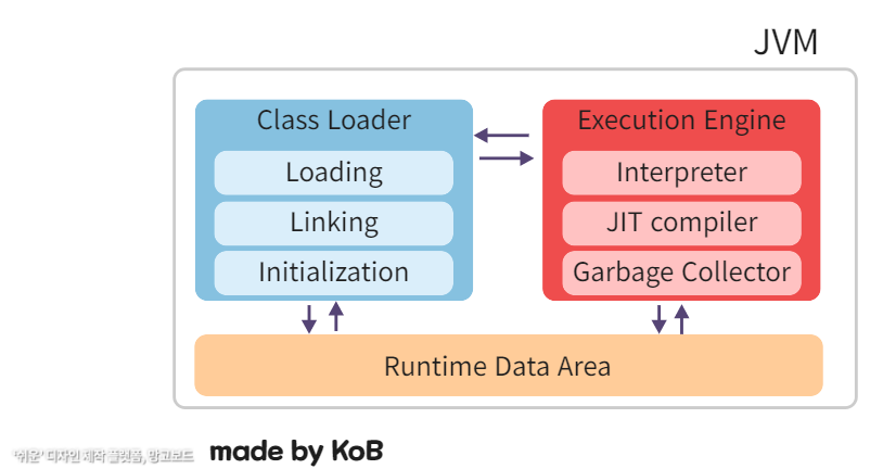 JVM은 크게 Class Loader, Execution Engine, Runtime Data Area로 나뉘어져 있다.